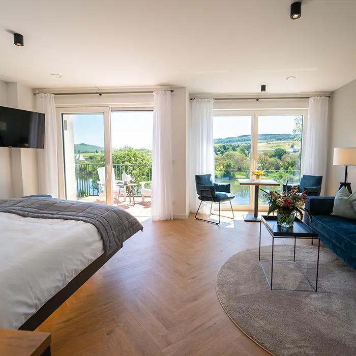Die Seele baumeln lassen bei traumhaftem Moselblick aus unseren Moselzimmern, Deluxe-Moselzimmern oder unseren Mosel-Logen. Aufwachen inmitten der Weinreben in unseren Deluxe Weinberg-Zimmern. Einfach relaxen in den komfortablen Standard- und Komfortzimmern. Bei uns werden Sie garantiert fündig.