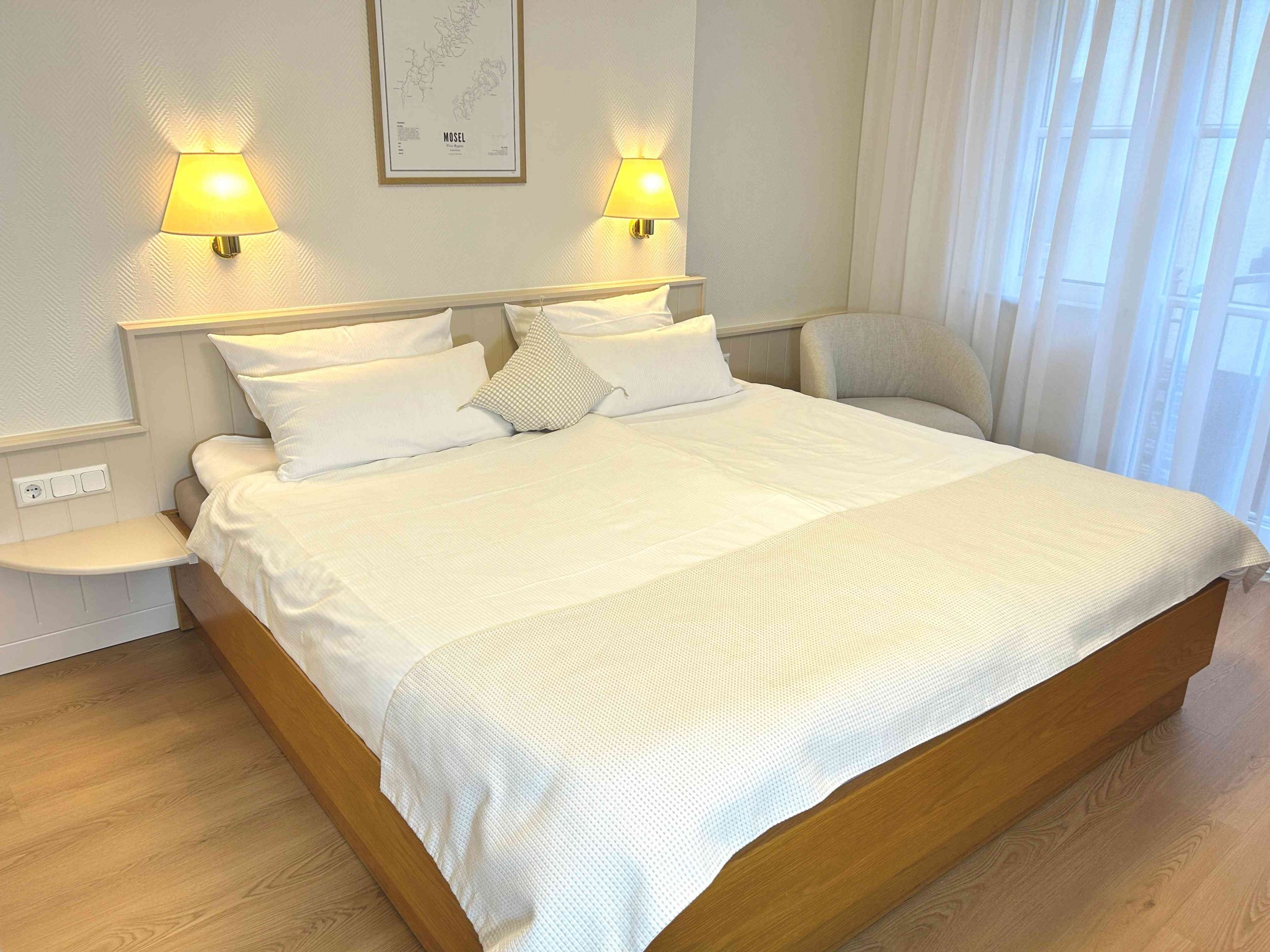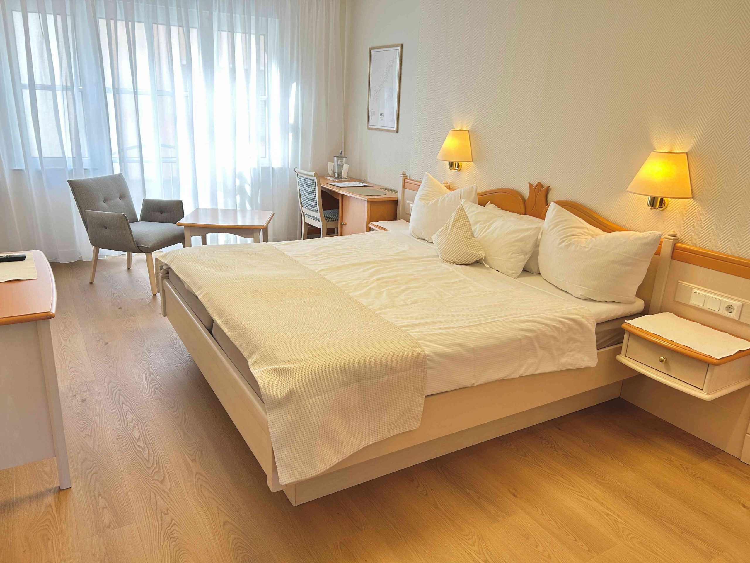 Simply relax! Our comfort rooms are located at the back, facing the quiet village. Comfortable beds, high-quality furniture and spacious bathrooms with bathtub invite you to linger on approx. 21 square metres!